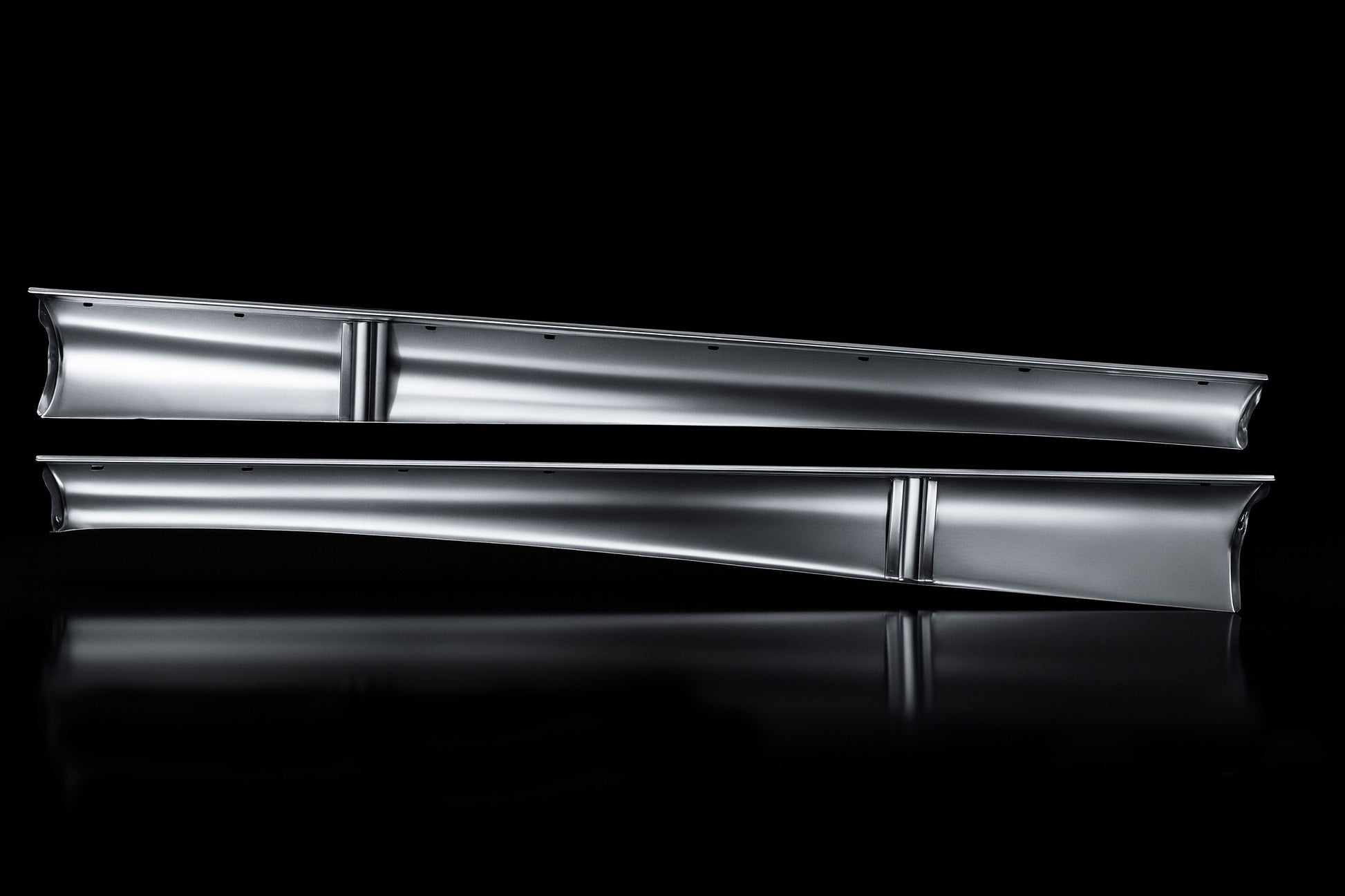 They also feature the correct deep inner reinforcement stampings, which provide additional strength and support to the running board and have the exact rounded shapes just like the originals at every length of the running board, which is almost never the case with other reproductions. This level of accuracy ensures that the running board set looks and fits just like the original, enhancing the overall appearance and value of your classic Beetle.