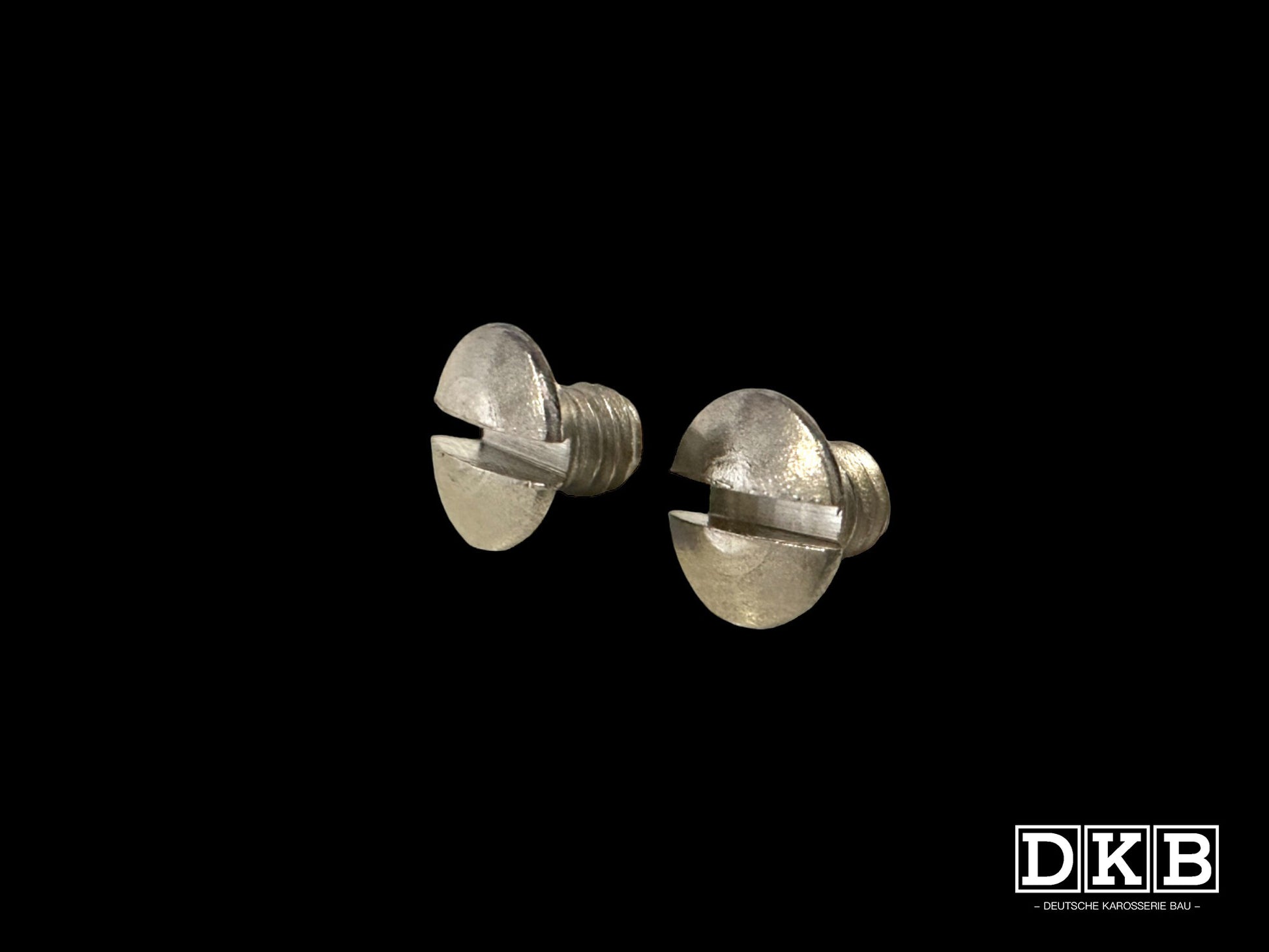 Correct specification screws to hold both halves of the original Safari windows. These are the correct metric specification short screws and feature the original style "Oval" slotted head (round on top, countersunk at the bottom). Made out of stainless steel these will never rust. Sold in pairs.